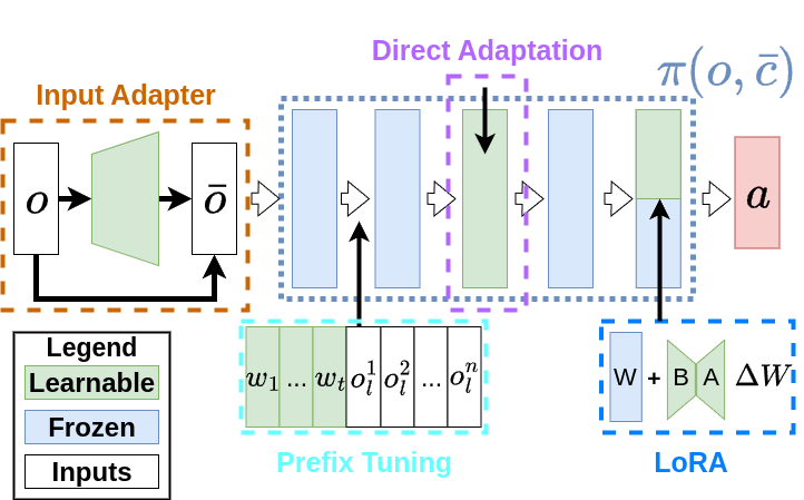 This chapter investigates morphology-aware policy transfer — the problem of learning control policies that generalize across robots with different physical bodies (morphologies), reducing the need to train from scratch on every new embodiment. The work frames this as a contextual Markov decision process where morphology information (e.g., limb connectivity, joint configurations) serves as context, allowing a single policy to reason across a distribution of robot designs. A key challenge is that while morphology-aware pretraining enables cross-embodiment generalization, it may sacrifice peak performance on any single target robot. To address this, the chapter explores Parameter-Efficient Fine-Tuning (PEFT) algorithms — borrowed from the large language model literature — as a compute-efficient means of adapting pretrained morphology-aware policies to specific target embodiments at deployment, where computational resources may be limited. The results provide empirical insight into which PEFT strategies best balance generalization and specialization in online reinforcement learning settings.